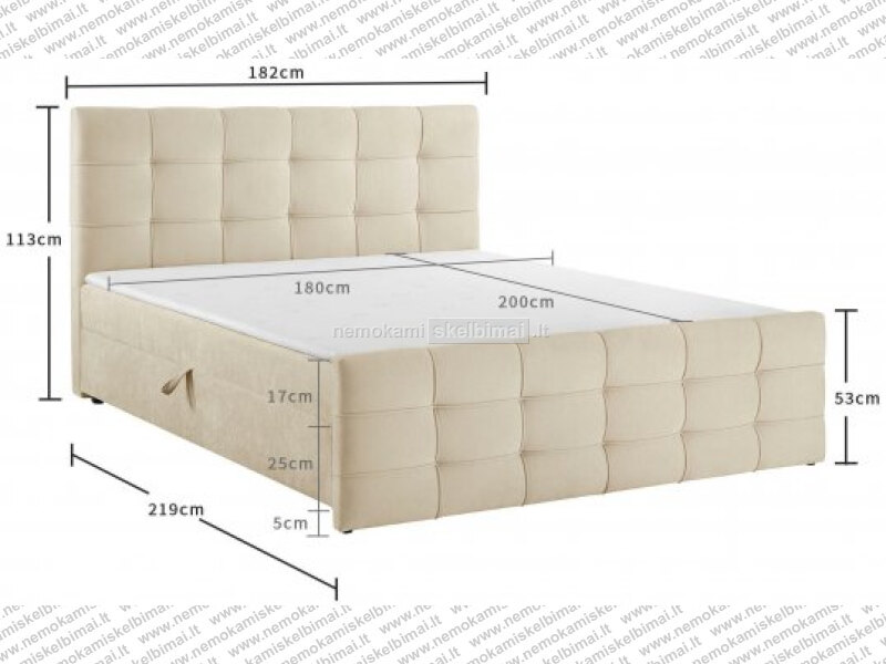 180x200cm kaina 1039€ 649€nukainuota (creme spalva su patalynės dėže)