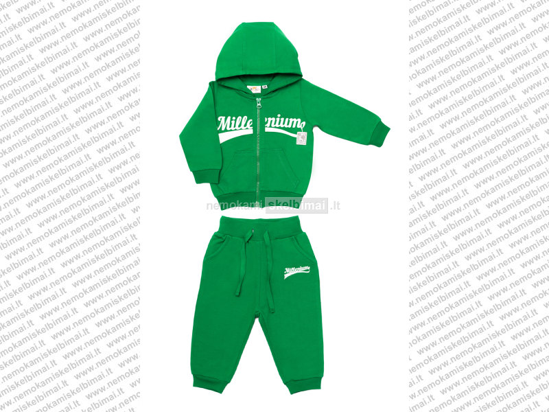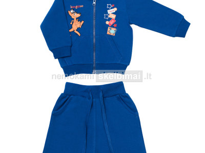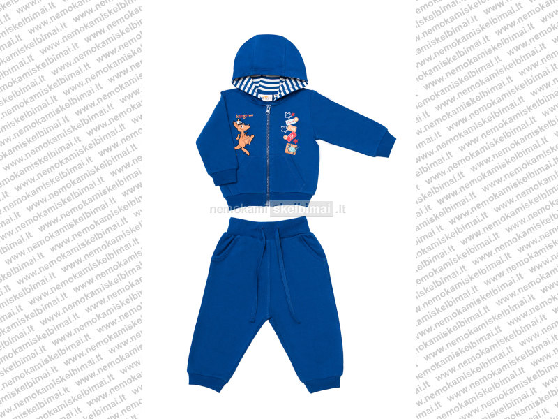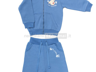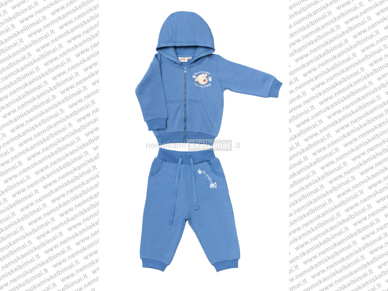 Medvilninis komplektukas berniukui arba mergaitei, džemperiukas su gobtuvu ir kišenėmis priekyje, kelnytės raištukais. Pasiūta iš nestoro audinio. 100% medvilnė.
