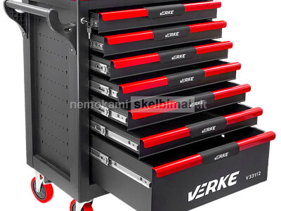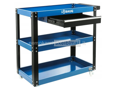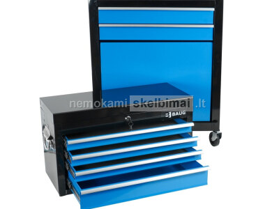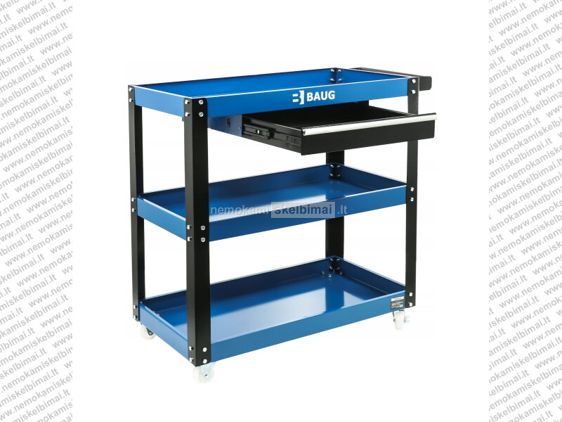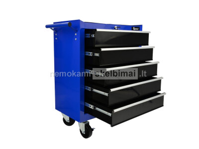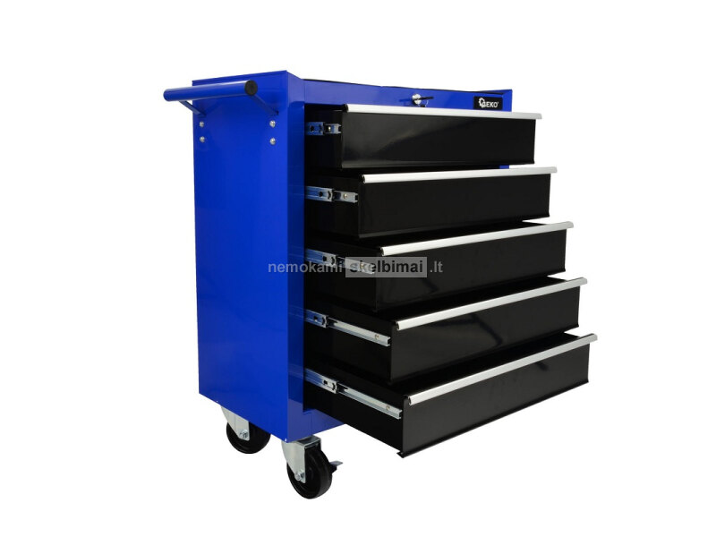5 stalčių vežimėlis įrankiams, su ratukais, matmenys (aukštis x gylis x plotis): 780mm x 330mm x 620mm + 80mm rankenėle. 164eur su pristatymu.