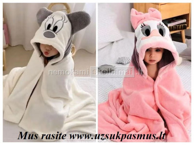 Minkštučiai vaikiški rankšluosčiai-pelerinos. Idealiai tiks apgaubti vaikučius iškėlus iš vonios, išėjus iš dušo. Taip pat galima panaudoti kaip apklotėlį. Kapišonas, kuris apsaugos vaikų galveles nuo vėjo (prie jūros, ežero) su mėgstamais personažais. Minkštučiai, švelnūs, labai gerai sugeriantys drėgmę. Mus rasite uzsukpasmus.lt (Rankšluosčiai