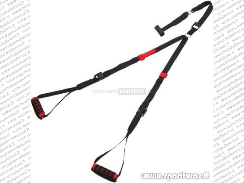 Specialus treniruočių diržas, kuris leidžia atlikti įvairius jėgos pratimus naudojantis kūno svoriu. Tai nešiojamas, kompaktiškas treniruoklis, kuris leis Jums užsiimti patogiomis treniruotėmis tiesiog namuose, kelionėje ar gamtoje. Jį galite pasikabinti ant durų, medžio šakos ar bet kurios vietos kurią galima perverti virve.