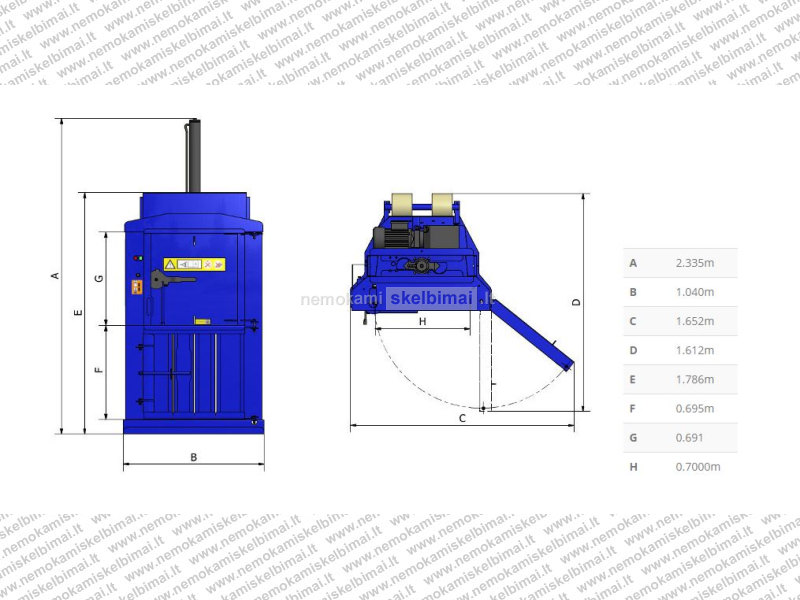 Tai yra puikus sprendimas įmonėms, kurios susiduria tvarkant kartono, popieriaus, plastiko, atliekas. Atliekų presas išsprendžia atliekų sandėliavimo ir transportavimo problemas. Yra galimybė supakuoti iki 75 kg svorio pakuotę.