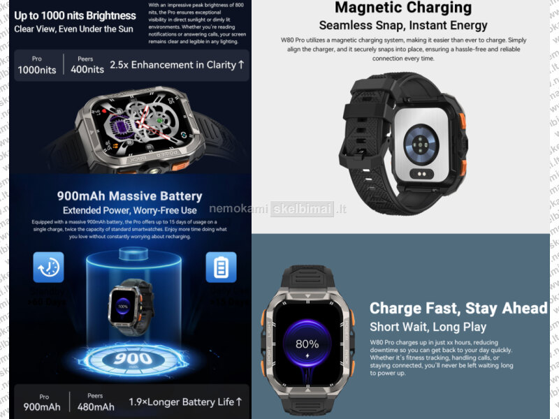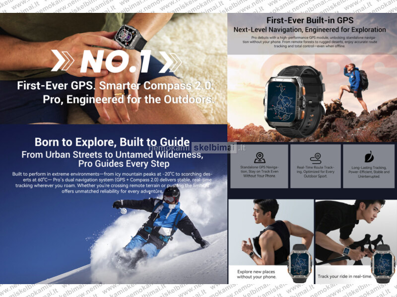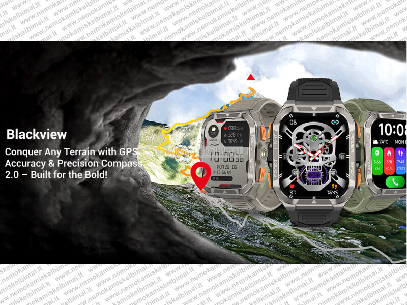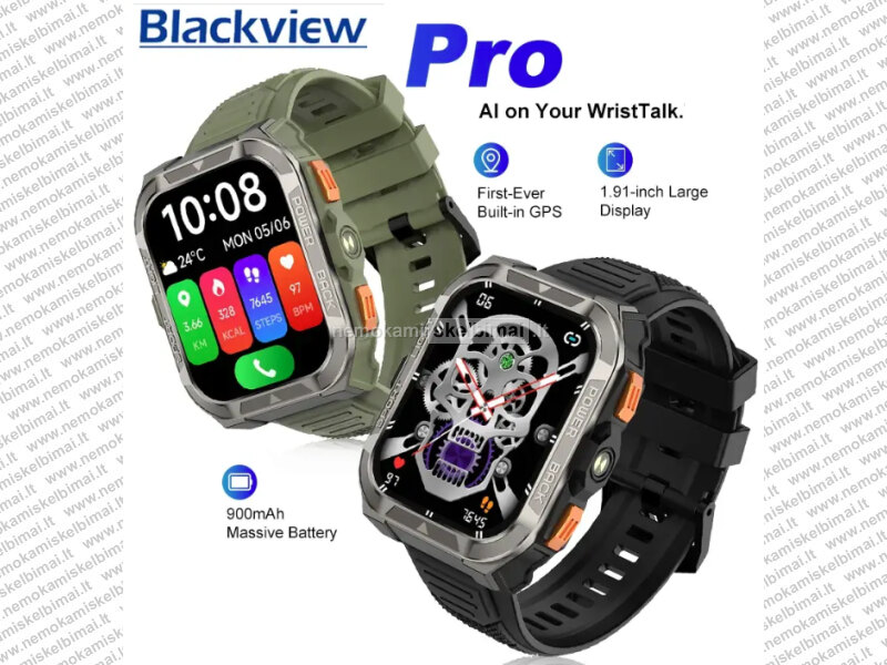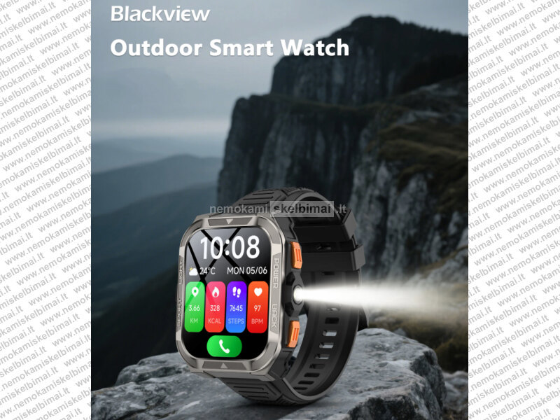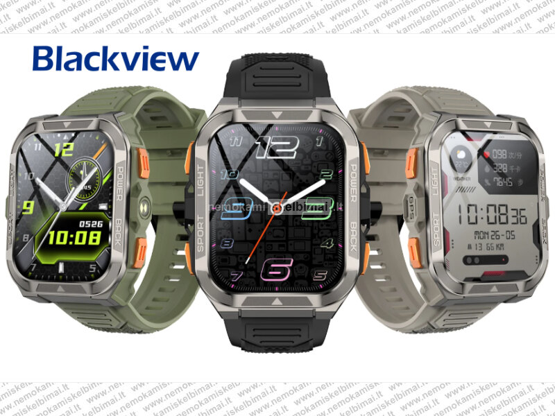 - Galingas ir itin patvarus išmanusis laikrodis Blackview Pro, sukurtas aktyvaus laisvalaikio ir nuotykių gamtoje mėgėjams. Pagrindinis šio modelio išskirtinumas – milžiniška baterija ir integruota navigacijos sistema, leidžianti keliauti be telefono.