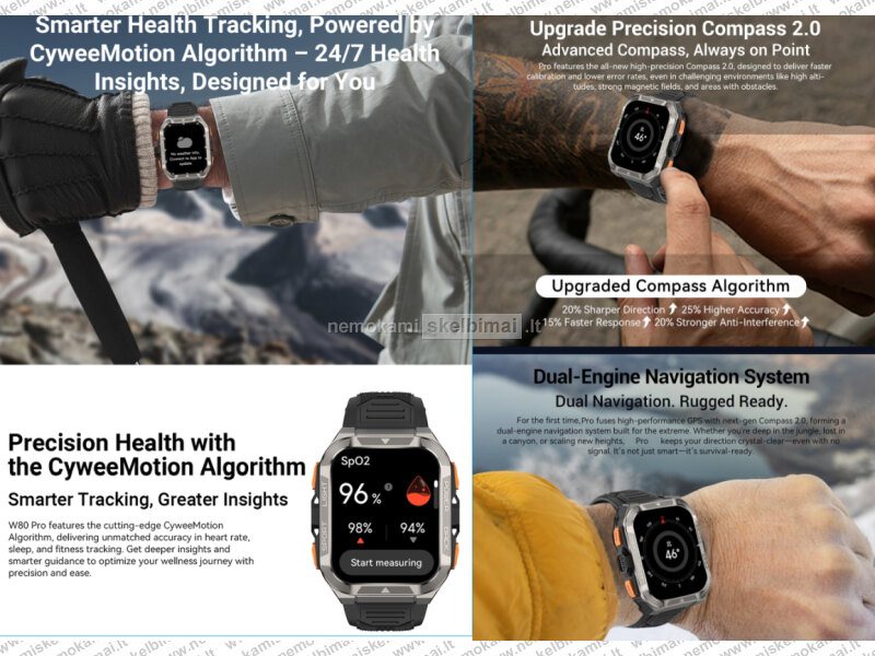 - Dviguba navigacija: Integruotas GPS ir „Compass 2.0“ sistema tiksliam maršrutų sekimui