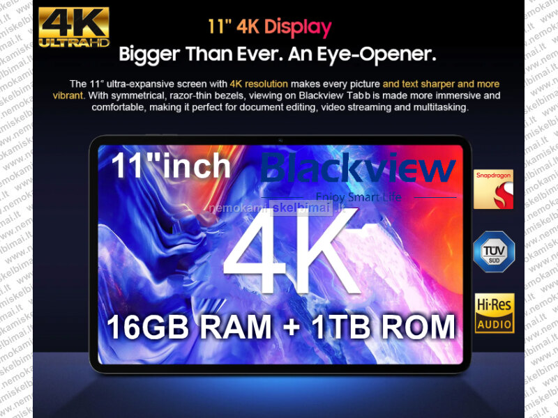 VISIŠKAI NAUJAS – NAUJAUSIAS MODELIS! BLACKVIEW 4K ULTRA TAB PC – AUKŠTOS KOKYBĖS, ORIGINALUS, GERAI ŽINOMO IR PATIKIMO PREKĖS ŽENKLO PLANŠETAS. ITIN GALINGAS, SPARTUS, TÜV SERTIFIKUOTAS – UŽ LABAI GERĄ KAINOS IR KOKYBĖS SANTYKĮ!