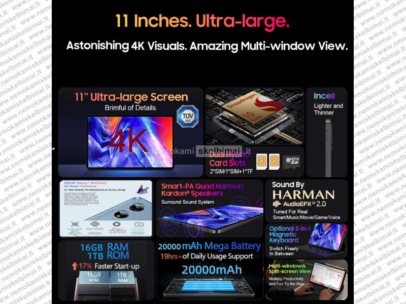VISIŠKAI NAUJAS - NAUJAUSIAS MODELIS! TECLAST 4K ULTRA TAB PC - AUKŠTOS KOKYBĖS, ORIGINALUS, GERAI ŽINOMO IR PATIKIMO PREKĖS ŽENKLO PLANŠETAS. ITIN GA