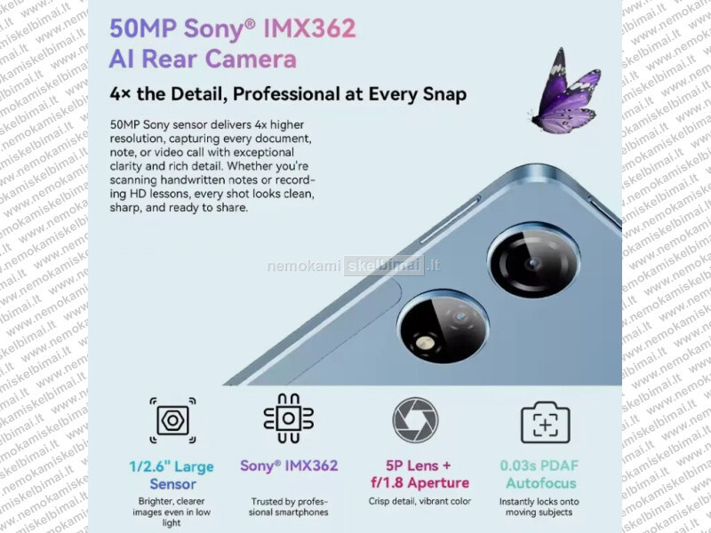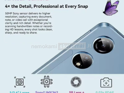 - Kameros: Kokybiškos Aukštos Raiškos SONY 50-60MP Galinės kameros + LED Blykstė + 48MP Priekinė Kamera,