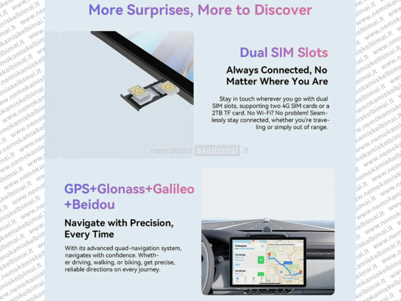 - microSD Lizdas: Palaiko iki 2TB (2000GB) microSD Atminties kortelės,