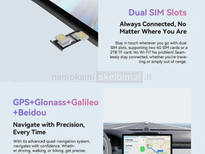 - Dual Nano-Sim: Palaiko Dvi 2Sim Nano-Sim kortelės 5G/4G+/4G/3G/2G/ ryšys,