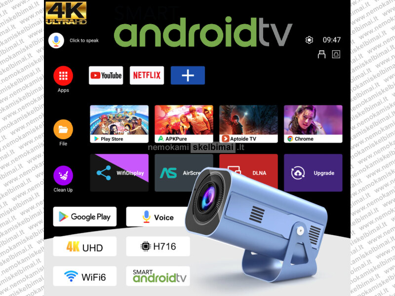 - NAUJAUSIAS AUKŠTOS KOKYBĖS 4K ULTRA HD SMART ANDROID PROJEKTORIUS H9600 MAX + TV-IMTUVAS - PILNAI SUKONFIGŪRUOTAS IR PARUOŠTAS NAUDOJIMUI! - YPAČ PLATUS BERIBIS MULTIMEDIJOS TURINYS! INTEGRUOTOS TŪKSTANČIAI VISIŠKAI NEMOKAMŲ PROGRAMŲ-TV KANALŲ-FILMŲ-SERIALŲ-GO3-LT-TV IŠ GOOGLE PLAY STORE 4K ULTRA HD KOKYBĖJE! YOUTUBE - BE REKLAMOS!, NETFLIX, TIKTOK, GALIMYBĖ NARŠYTI INTERNETE, BENDRAUTI PER VIBER, MESSENGER, FACEBOOK, TWITTER, INSTAGRAM, NAUDOTIS EL. PAŠTO BEI DOKUMENTŲ REDAGAVIMO IR PERŽIŪROS PROGRAMOMIS, ŽAISTI ŽAIDIMUS, SKAITYTI KNYGAS, KLAUSYTIS DAUGYBE SKAITMENINIŲ RADIJO STOČIŲ, MUZIKOS Ir Daug Daugiau!