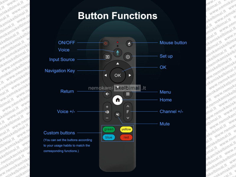 - NAUJOS KARTOS! PATOGUS IR STILINGAS PULTELIS SU "AIRMOUSE" FUNKCIJA, KURIOS PAGALBA JUDESIAIS GALĖSITE VALDYTI EKRANO KURSORIŲ. PULTELIS NAUDOJA BEVIELĮ BLUETOOTH 5.0 RYŠĮ, TODĖL PUIKIAI VEIKIA NET KAI PROJEKTORIUS NĖRA TIESIOGINIO MATOMUMO ZONOJE!