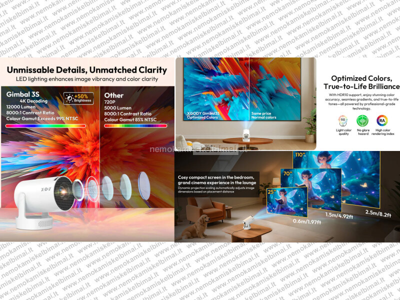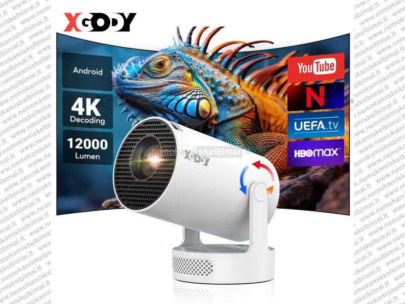 NAUJAUSIAS MODELIS! - AUKŠTOS KOKYBĖS, BRENDINIS, ORIGINALUS, SERTIFIKUOTAS - 4K ULTRA HD SMART ANDROID IŠMANUSIS TV-PROJEKTORIUS XGODY 3S