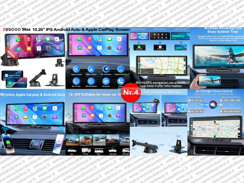 • ESSGOO MAX – naujos kartos 10.26" CarPlay / Android Auto magnetola automobiliui.