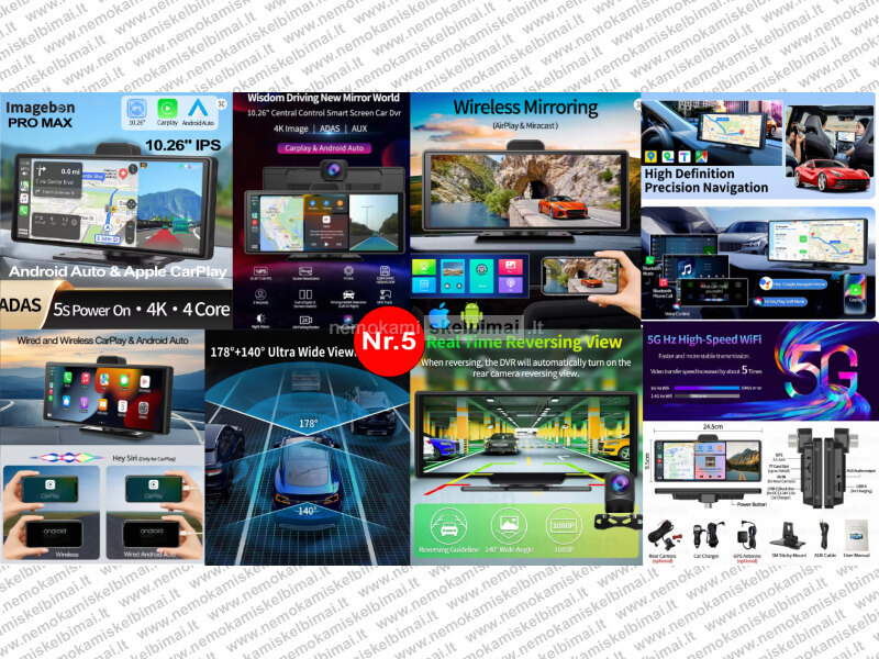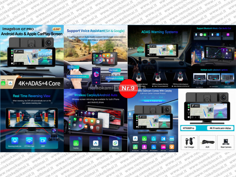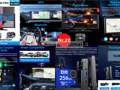 NAUJI AUTOMOBILIO EKRANAI SU ANDROID AUTO - CARPLAY IR 4K REGISTRATORIUMI