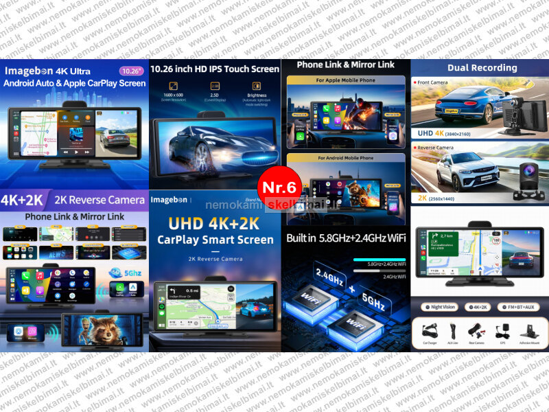 • IMAGEBON 4K ULTRA – naujos kartos 10.26" jutiklinis automobilio ekranas su UHD 4K kamera, belaidžiu CarPlay ir Android Auto.