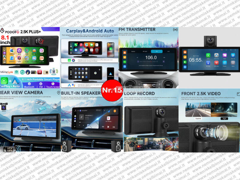 NAUJI JUTIKLINIAI AUTOMOBILIO EKRANAI SU ANDROID AUTO - CARPLAY IR 4K VAIZDO REGISTRATORIUMI