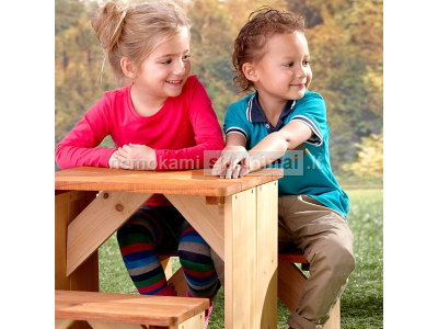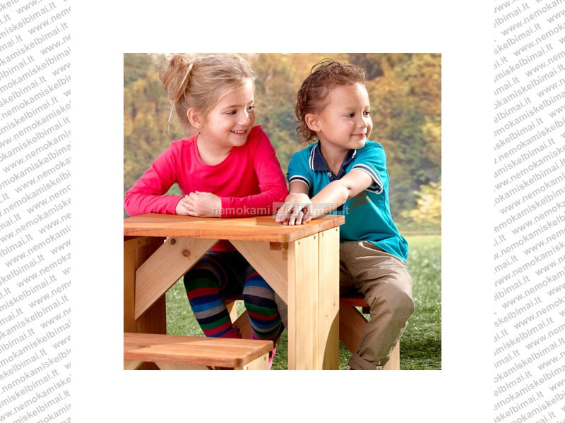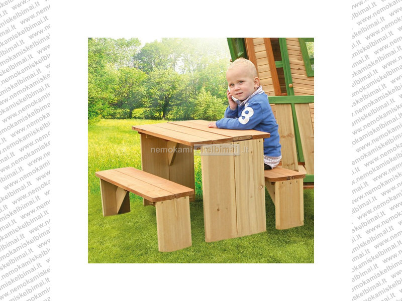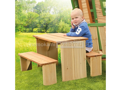 Smagūs ir kompaktiški komplektai piknikui šalia jūsų žaidimų namelio AXI arba tiesiog sode. Pagaminti iš aukštos kokybės medienos, atitinka Europos Bendrijos žaislų saugumo standartą EN-71! Garantija 5 metai medžiui, 2 metai konstrukcijai! Įvairių komplektų kaina AKCIJA nuo 48 Eur. Daugiau WWW.BATUTAI.LT, info@batutai.lt, tel.8611 39077, Jurgita