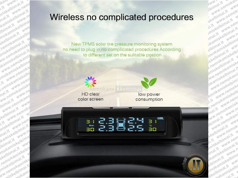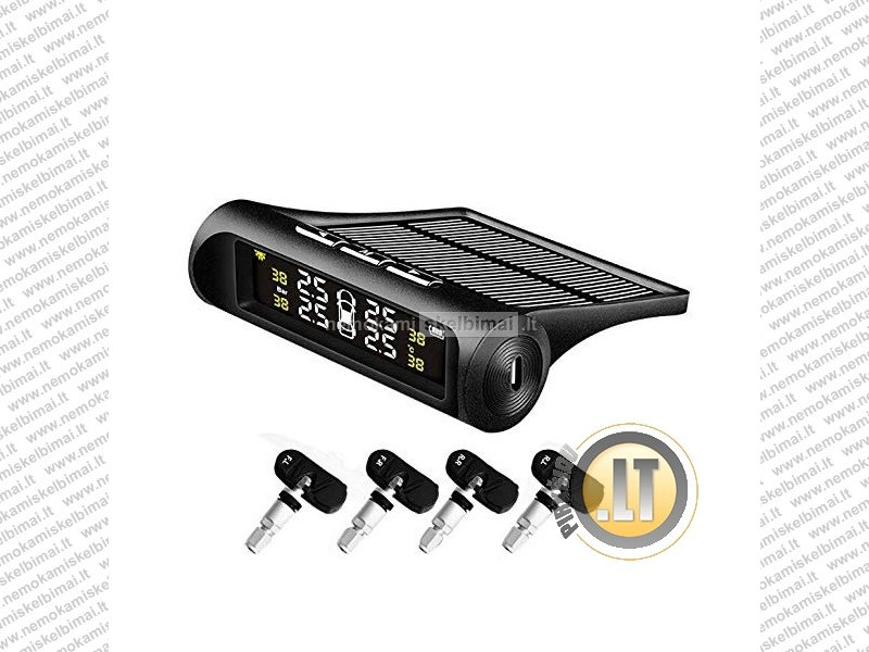 NAUJIENA! TPMS 37 Internal padangų slėgio matuoklio rinkinys, TPMS 4vnt jutikliai. Priva¬lumas yra nuolatinis ir faktinis padangos slėgio matavimas, visada matysite padangų būklę, kad ir kur vyktumėte. Spalvotas ekranas + ilgaamžiškumas + 100% saugumas ir tikslumas + WIFI + saulės kolektorių tipo įkrovimas.