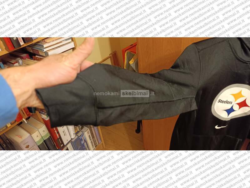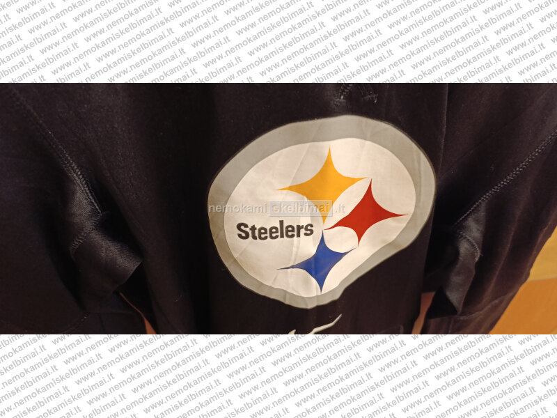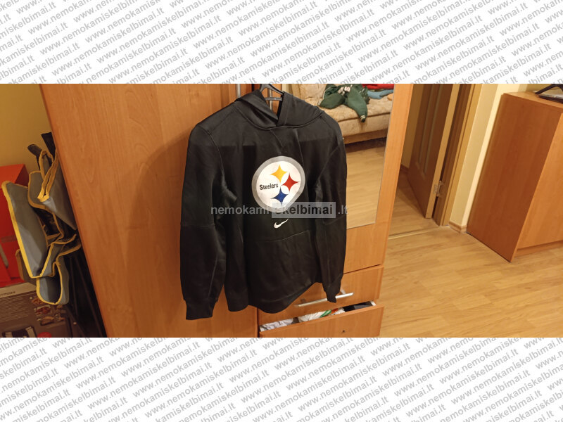 Originalus Nike firmos džemperis su NFL klubo Steelers logotipu. Būklė labai gera, be defektų, bet matosi, kad dėvėtas. Dydis vaikiškas L, daugmaž 12-13 metų.