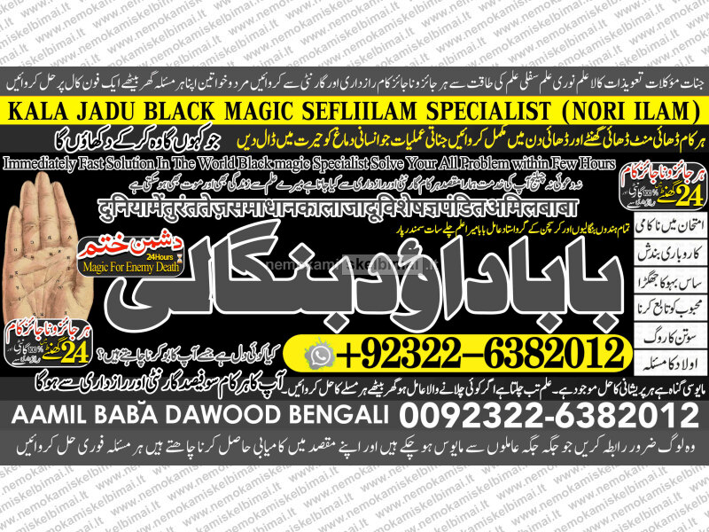 Amil Baba Dawood Bangali { PAK: 0322-6382012 ---- UAN: 0092-322-6382012} is a renowned spiritual healer and master of ancient occult sciences, specializing in Black Magic, Sephi Ilam, Nori Ilam, and Voodoo Spells. With decades of experience in the mystical arts, he has gained a reputation as a powerful and trusted guide for those seeking solutions to life's most challenging problems.