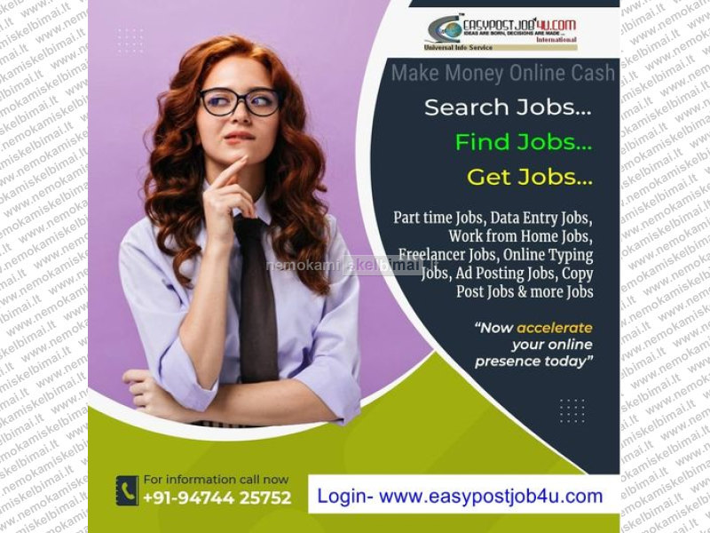 Work At Home Online Ad Posting Jobs. A Unique Online Earning Platform for all ages, we are offering an Online Opportunity to those who want to earn EXTRA INCOME in their spare time using their skill. Internet Access is needed. For More info Click our website at http://www.easypostjob4u.com or Call +91-9474425752 Advertiser GYU19830PNR