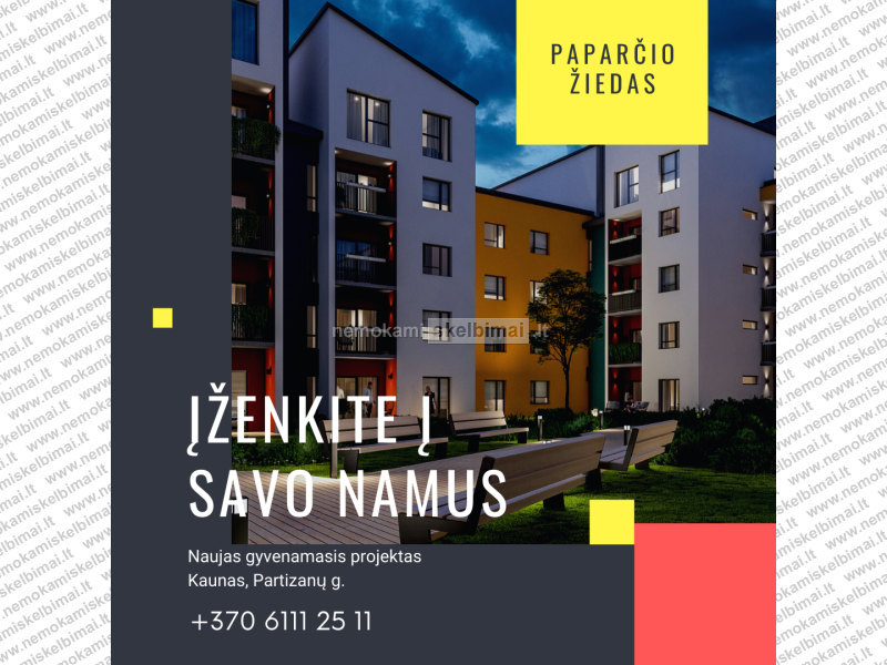 Parduodamas trijų kambarių butas naujame nekilnojamo turto projekte „Paparčio žiedas“ 47,5 kv. m. dydžio. Projekto adresas: Partizanų g. 192B, Kaunas