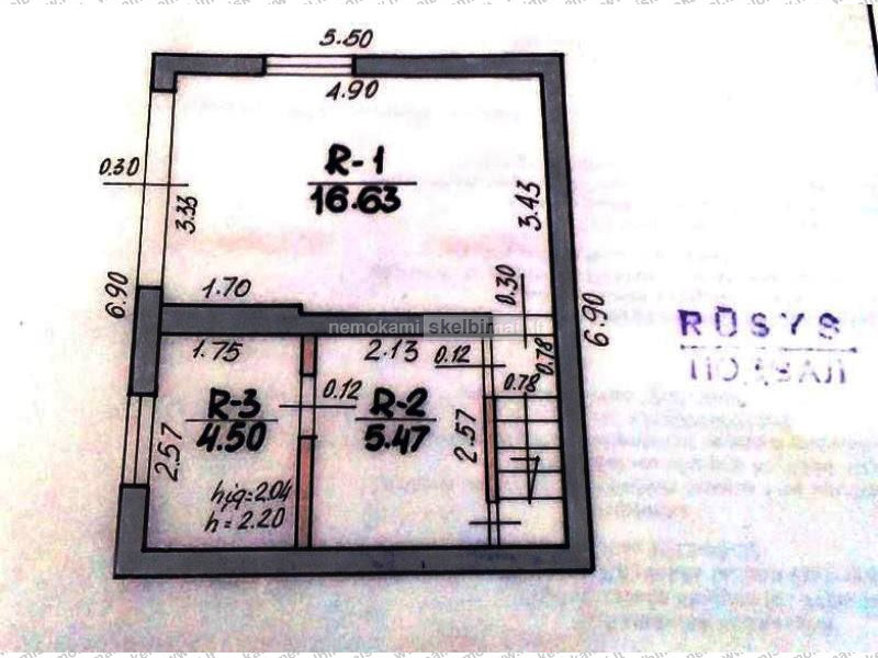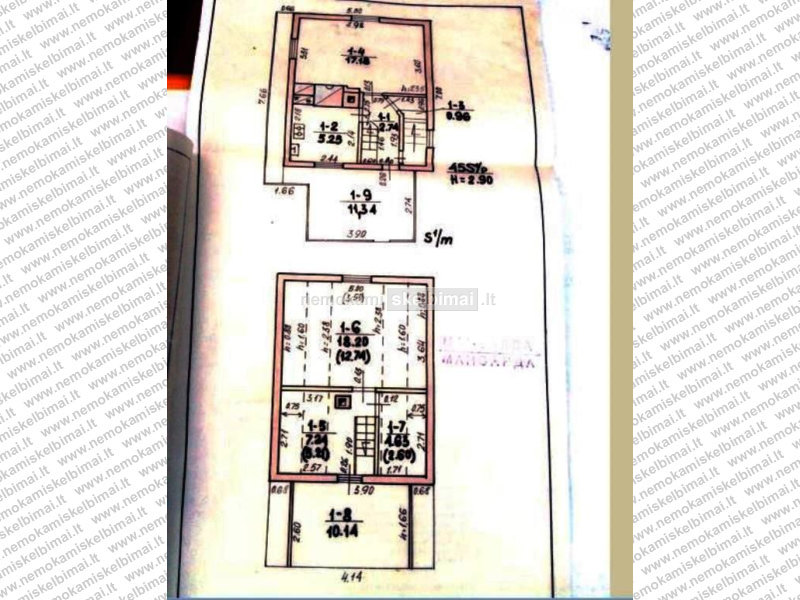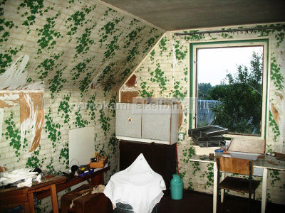 Namas įrengtas: I aukštas - 1 kambarys, virtuvė, tamsus kambarys, dengta terasa. II aukštas – 2 izoliuoti kambariai. Galima gyventi žiemos metu. Reikia remonto.