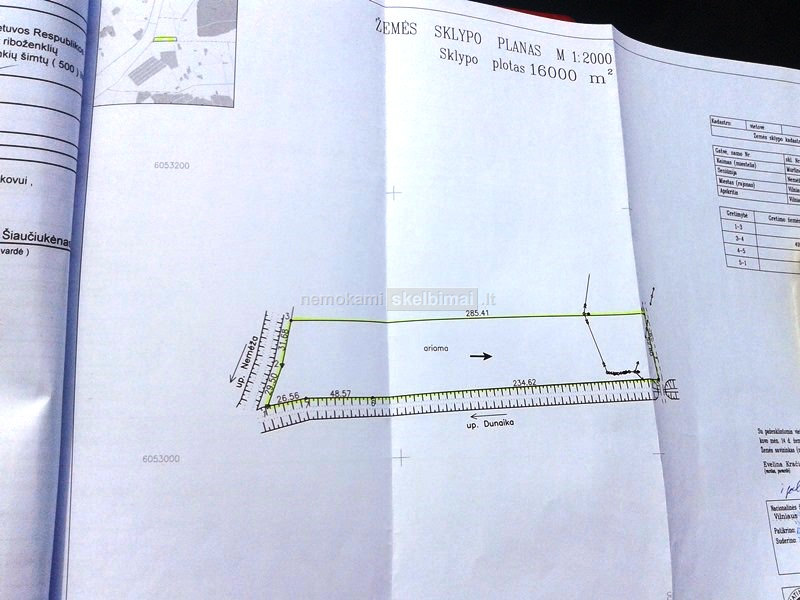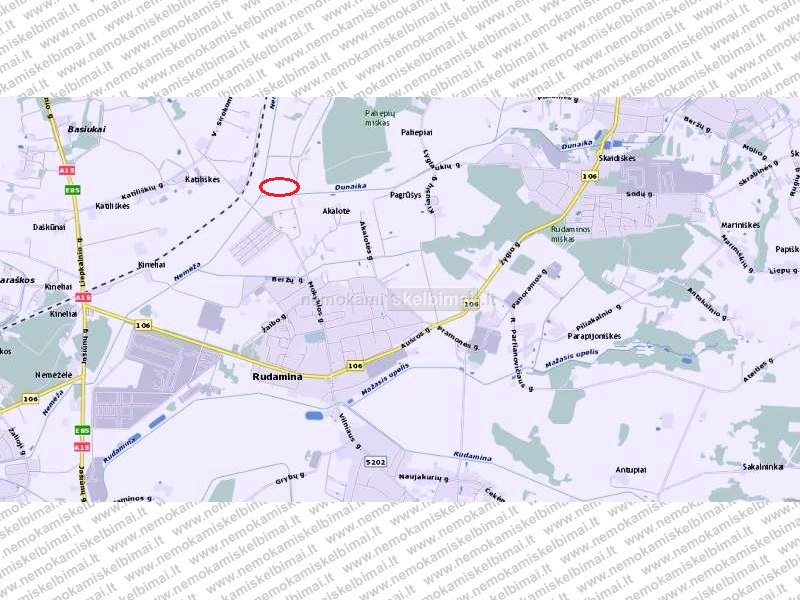 Sklypas viena kraštine apie 300 m ribojasi su Dunaikos upeliu, kita kraštine – apie 60 m su Nemėžos upeliu. Sklypas be pastatų, stačiakampio formos.