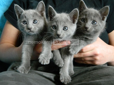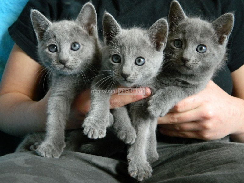 Parduodami nuostabūs penki veisliniai rusų melsvieji katiniukai, gimę 2017 05 18 d. Šiuo metu jau patys mokosi ėsti, lakti, tvarkingai daryti “reikaliukus“ į savo kraiko dėžutę ir nuolat šelmiškai dūkti tarpusavyje. Katinukai sveiki, meilūs, linksmi ir judrūs, melsvai pilkos spalvos, pliušinio kailiuko, šeriami kokybišku maistu.