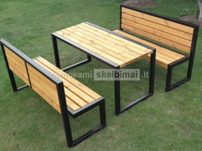 Gaminame lauko baldus. Sendintas lauko baldu komplektas iš eglės/pušies. Impregnantu dengtas du kartus. Komplektą sudaro: stalas (160x75cm), 2 suolai