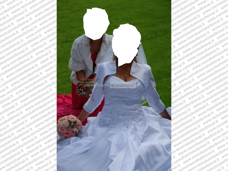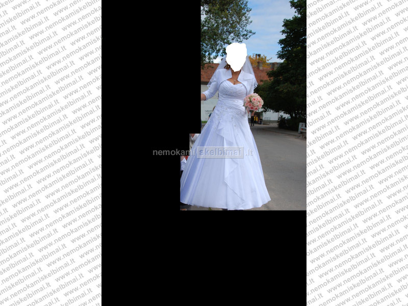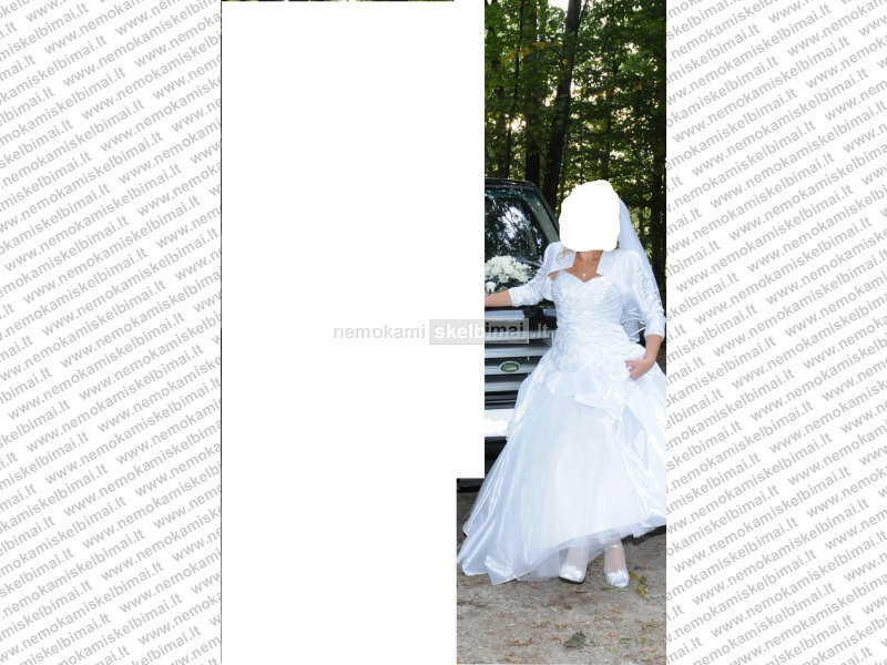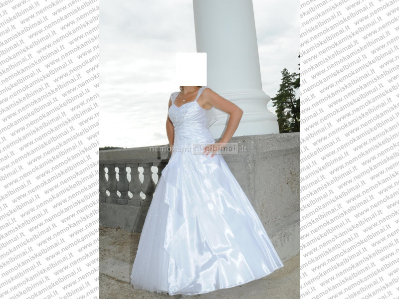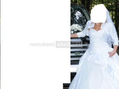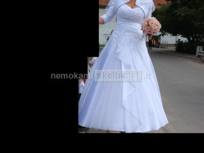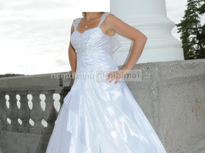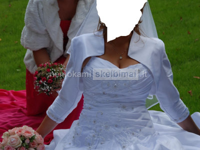 Parduodu labai grazia tik vieną kartą dėvėtą vestuvinę suknelę. Pirkta Lenkijoje, nauja is salono firmos "Sarah". Išvalyta valykloje. Sukneles didis 36-42 apie 160-165cm ugio nuotakai. I kaina ieina nuometa, svarkelis ir bateliai 38 dydzio.