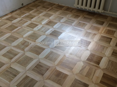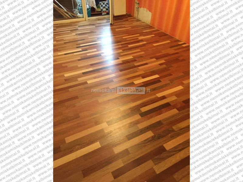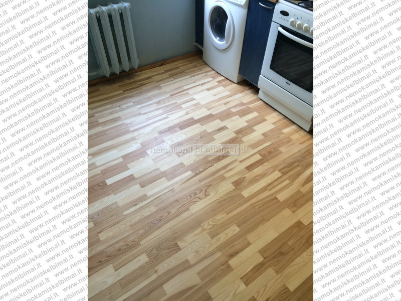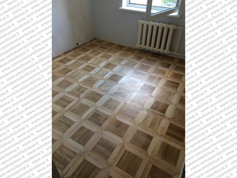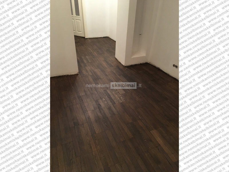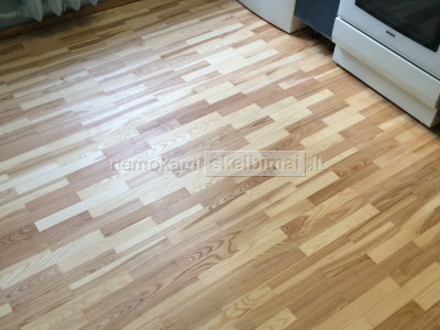PARKETO, PARKETLENČIŲ, MEDINIŲ GRINDŲ, GRINDINIŲ LENTŲ, LAMINATO ĮRENGIMAS: KLOJIMAS;