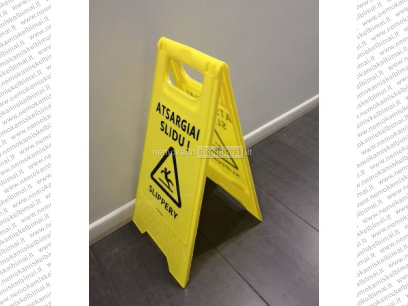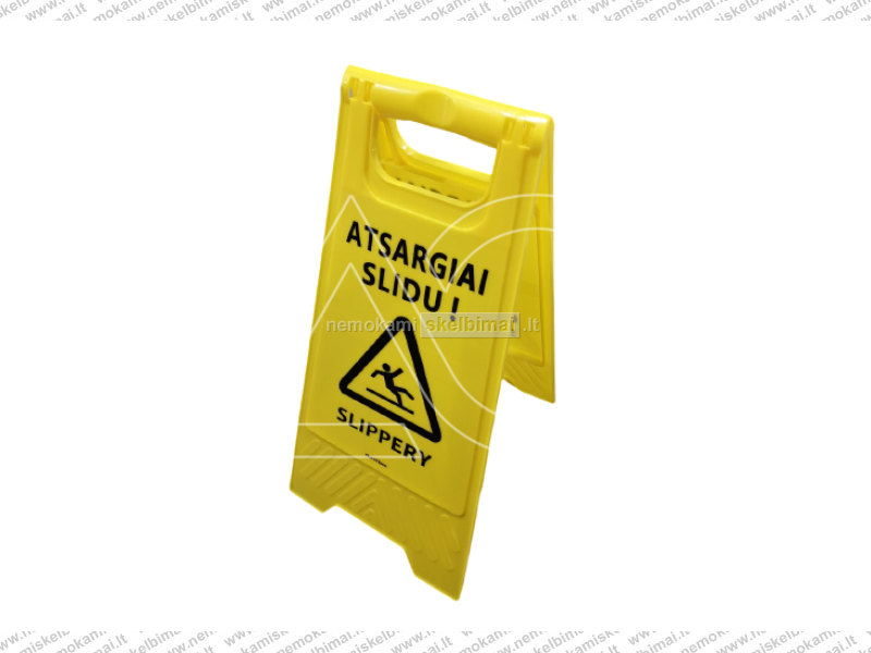 Įspėjamoji priemonė esant šlapiai ar slidžiai grindų dangai.