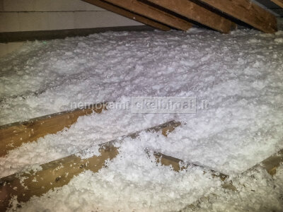 Pastatų perdangų šiltinimas celiuliozine ekovata Ekowool, medžio plaušo Steico zell ir mineraline Knauf vatomis.