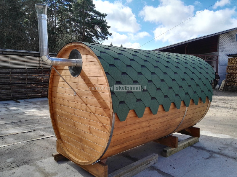 Lauko pirtis backutės formos. Apvalias pirteles gaminame 2, 3, 4 metrų ilgio. Gaminame iš 50mm. stororio medienos. Mūsų pirtelės pagamintos iš aukščiausios kokybės medžiagų, nepriekaištingai surinktos. Suteikiame darbams ir medžiagom garantiją.