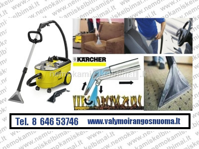 O taip pat giluminiu cheminiu būdu valome ir plauname, kilimus, kilimines dangas, minkštus baldus. Kilimus valome pas klientą arba išsivežame.
