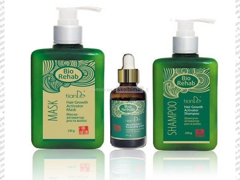Priemonės skatinančios plaukų augimą. Rio rehab rinkinį sudaro: šampūnas-augimo aktyvatorius plaukams 250 g kaukė-augimo aktyvatorius plaukams 250 g tonikas-augimo aktyvatorius-50 g.