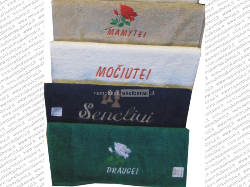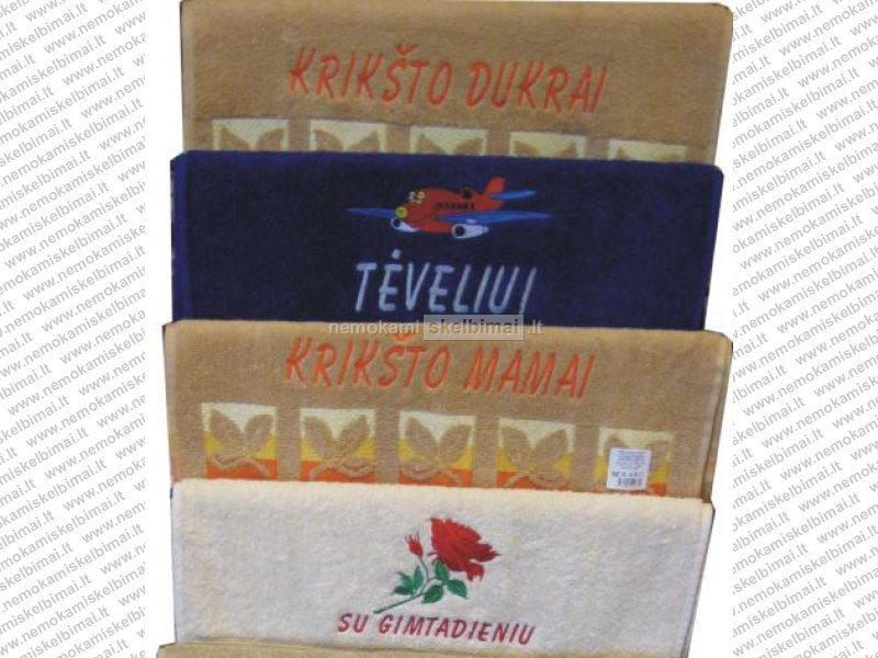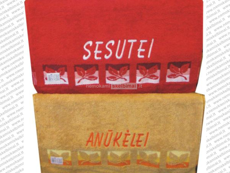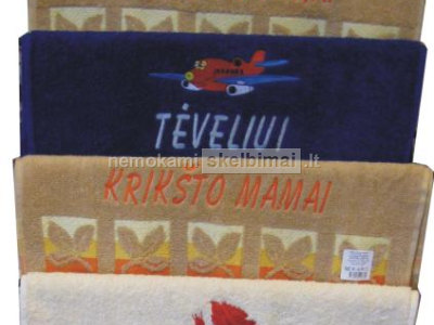 Dydžiai: 50x100 ir 50x90 cm. 50x90 cm yra su pasiuvinėtais lapeliais. Sudėtis: 100% medvilnė. Supakuotas į užlipinamą polietileninį maišelį. Pagaminta Lietuvoje.
