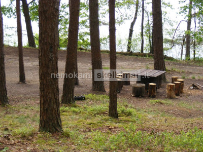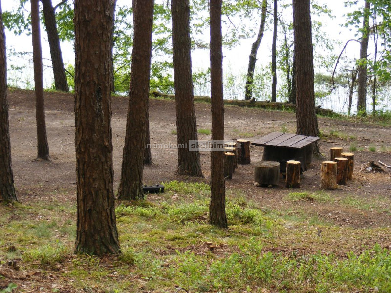 Sutvarkyta teritorija, su stalu, sedimomis vietomis, lauzaviete, tualetu. Sesiasdesimt metru kranto, lieptas.