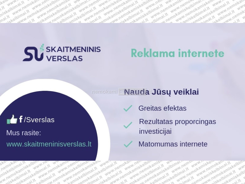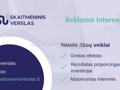Už nedidelį mokestį mūsų komanda pasirūpins, kad jūsų pageidaujama reklama internete būtų paleista ir optimizuota tinkamai, geriausiam rezultatui už mažiausią kainą pasiekti. Be to sukursime patrauklių reklaminių paveikslėlių (banerių) ir pakonsultuosime kokį turinį ir kur platinti.