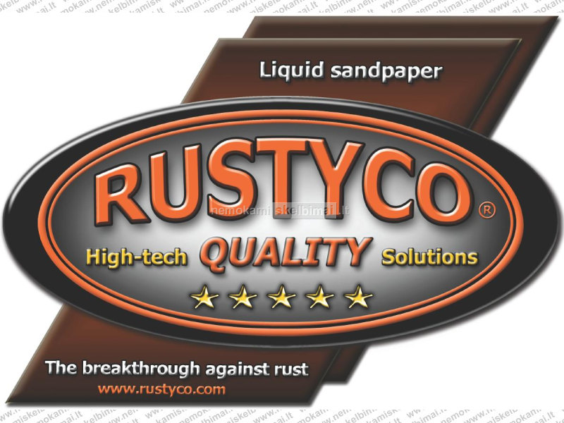 RUSTYCO Gelis. rūdžių tirpiklis, gali būti tepamas teptuku. Pašalina rūdis nuo plieno, nerūdijančio plieno, aliuminio ir t.t. Tai ne rūdžių modifikatorius. Tai yra idealus substratas visiems gruntams ir dažams. RUSTYCO rūdžių šalinimo priemonė nepakenks daugelio rūšių lakui, plastikui, medžiui, gumai, stiklui, variui, chromui ir kitiems.