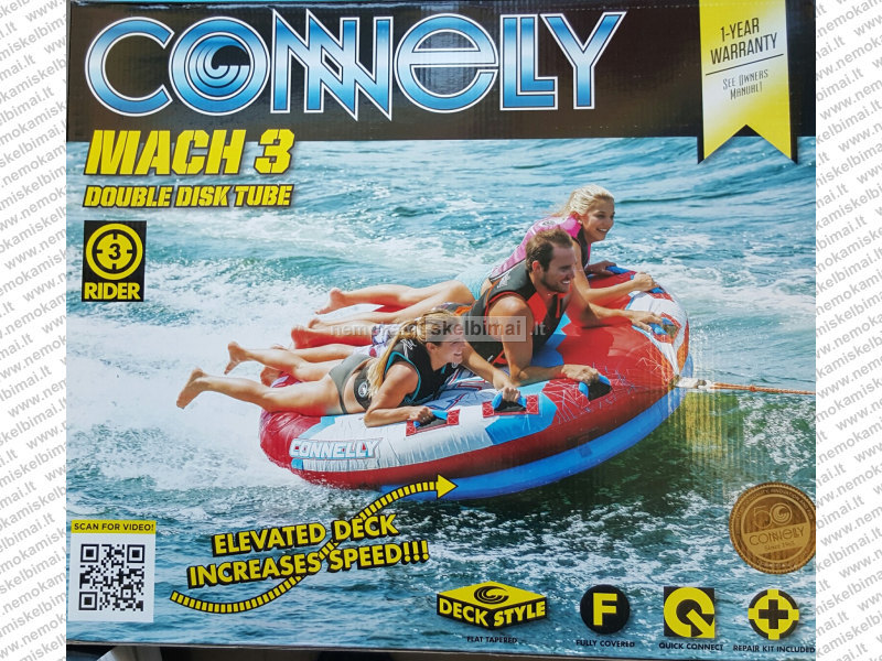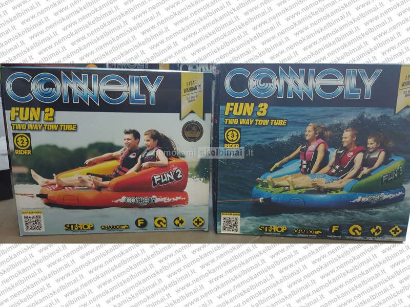Connelly Fun 3 vandens atrakcionas yra labai naujoviško dizaino, nes turi du visiškai skirtingus naudojimo būdus. Pirmasis - tempiant jį iš priekio, tada važinėtojai gali patogiai, saugiai atsisėsti. Antrasis būdas - tempiant iš nugaros, šis atrakcionas tampa kovos vežimu,kuris viską agresyviai pervažiuoja kaip Romos armija nugalėjo Troja. Taigi, visa šeima bus laiminga pasirinkus savo būdą!
