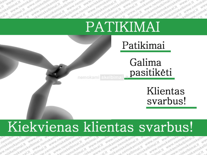 Skambindami pasakykite, kad skelbimą radote portale Nemokamiskelbimai.lt. Čia visada nemokamas skelbimo įvedimas.