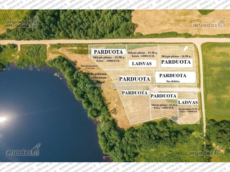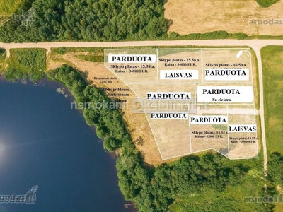 Karvio ežeras šalia pirmos juostos sklypų, nuo antros juostos sklypų - nusileisti nuo kalvos.