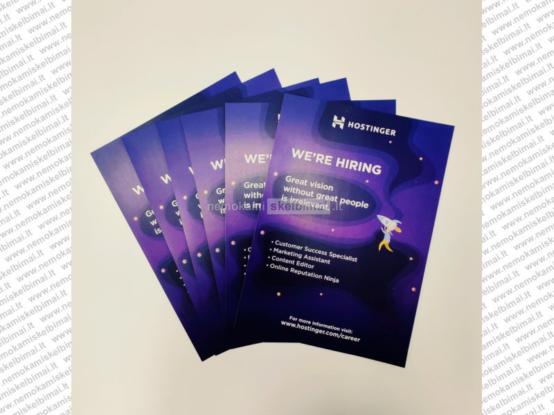 Skrajutės Kaune, skrajutės maketas, skrajučių gamyba, skrajučių spausdinimas, lankstinukai, skrajučių maketavimas, skrajučių gamyba internetu, bukletų gamyba, pigiausios skrajutės, laminuoti plakatai iki A3 formato, lankstinukai, skrajutės pigiau Vilnius, prabangios vizitinės kortelės Kaunas, kalendoriai, vokai, lankstinukų maketavimas.