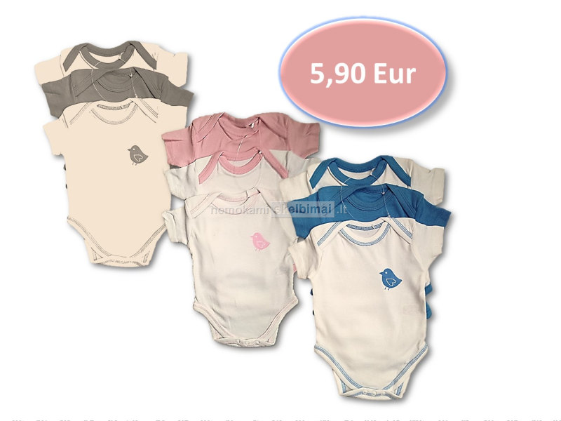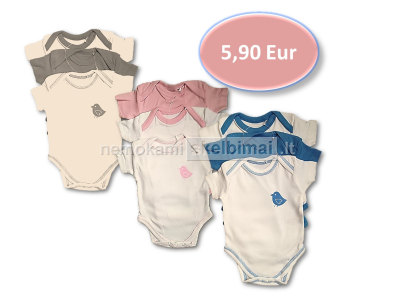 Smėlinukų (bodžiukų) komplektas 3vnt. trumpomis rankovėmis (mergaitėms, berniukams arba neutralūs)
