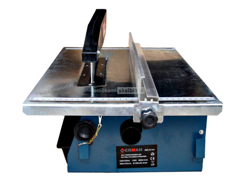 Komplekte - pjovimo diskas plytelėms ir medienai, nukreipėjas, apsauga, plyteliu laikiklis, instrukcija.