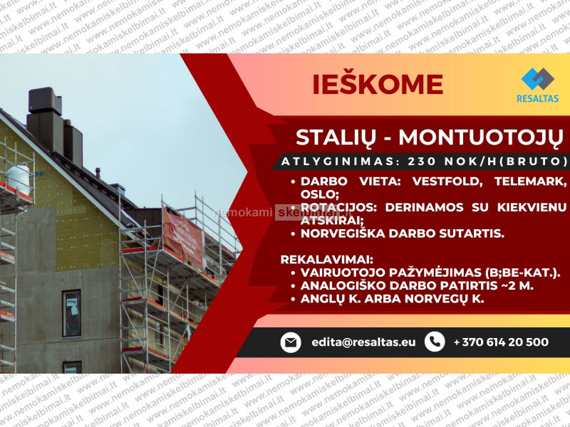 ATLYGINIMAS: 230 Nok / val. (Bruto);