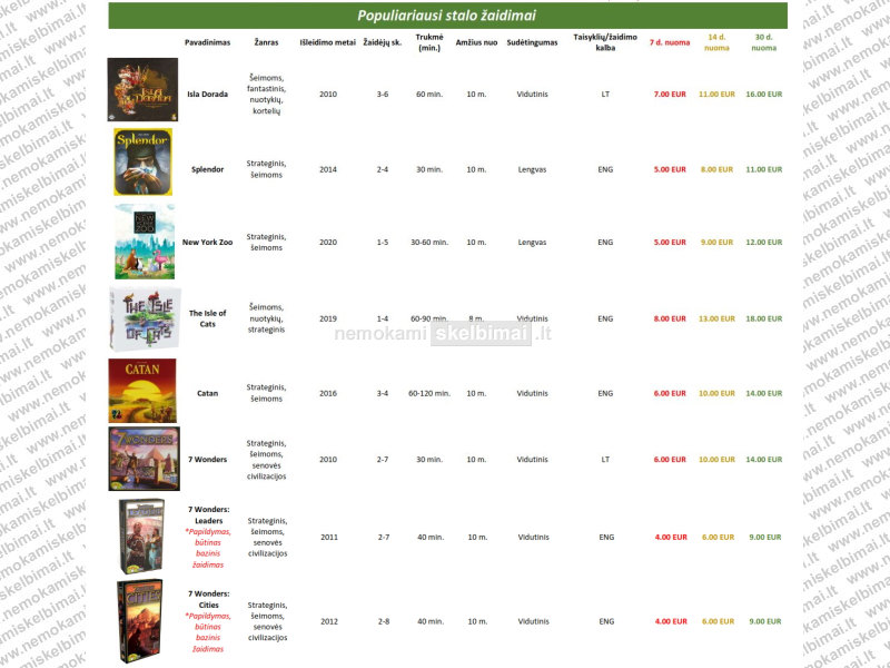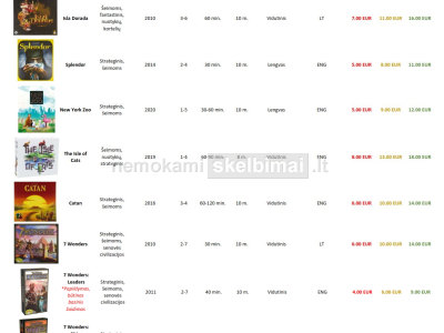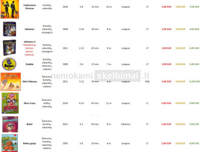 Nuotraukose rasite žaidimų katalogą su kainynu.