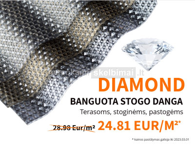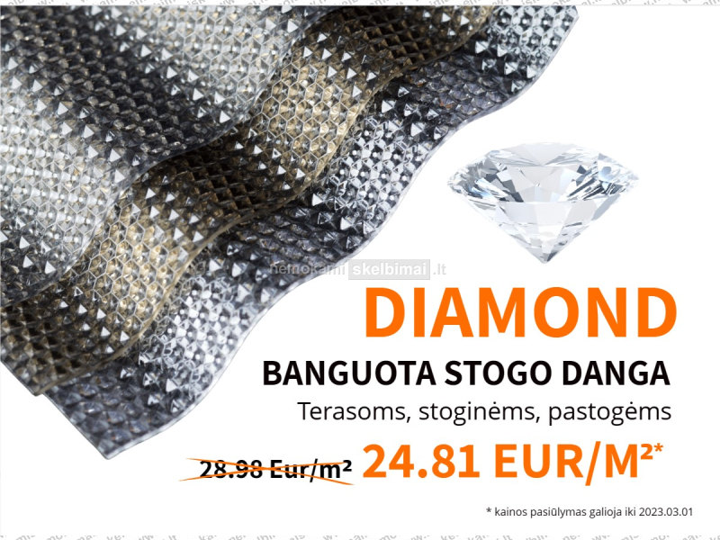 Šiuo metu vyksta puikus pasiūlymas. Diamond dangą įsigykite už 24.81 Eur/m2 * (vietoj 28.98 Eur/m2)